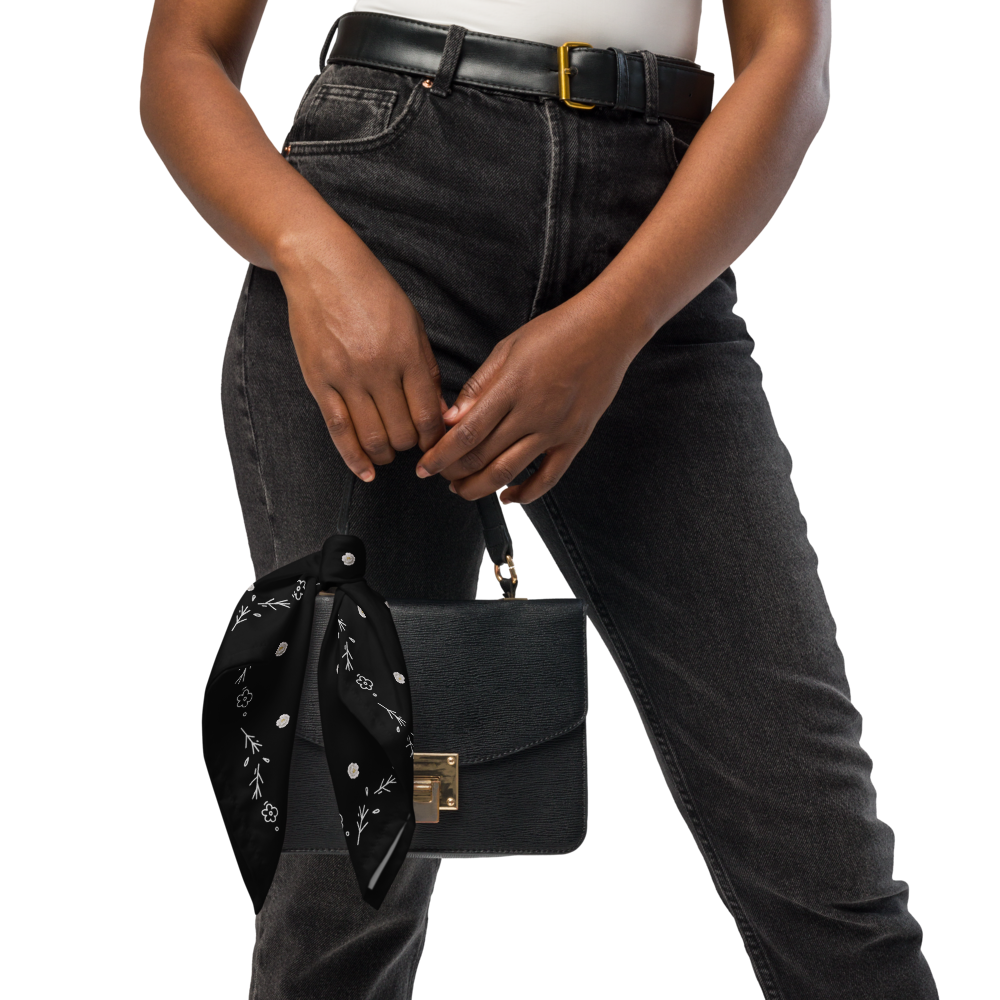 Simplicity meets sophistication in the Midnight Bloom Bandana. Featuring tiny white blossoms and delicate hand-drawn borders on a deep black canvas, this design captures quiet elegance and effortless charm. Perfect for both casual and chic looks — wear it around your neck, in your hair, or tied to your bag for a subtle floral statement that never goes out of style.